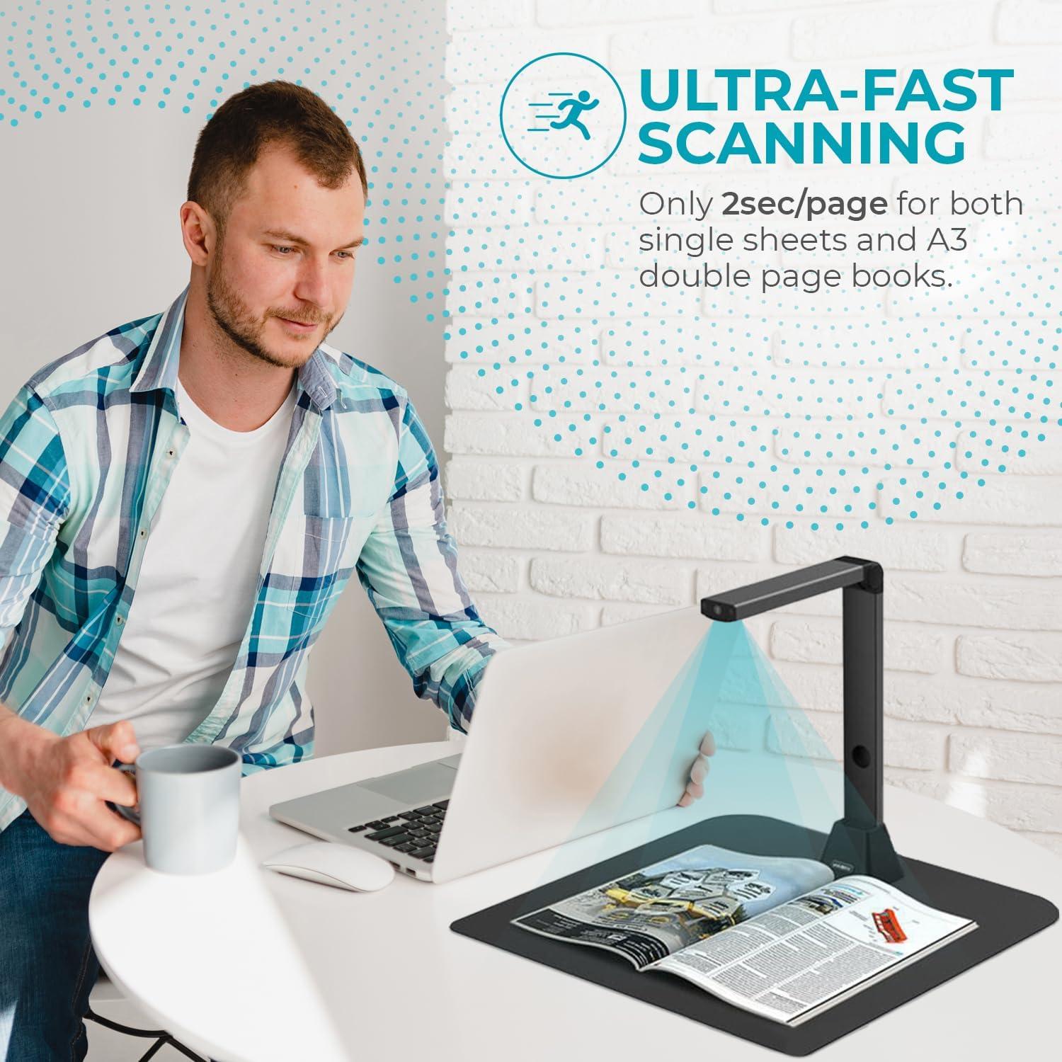 Portable scanner and book scanner: Compact and portable design allows for easy scanning on the go, including the ability to digitize pages from books or magazines.